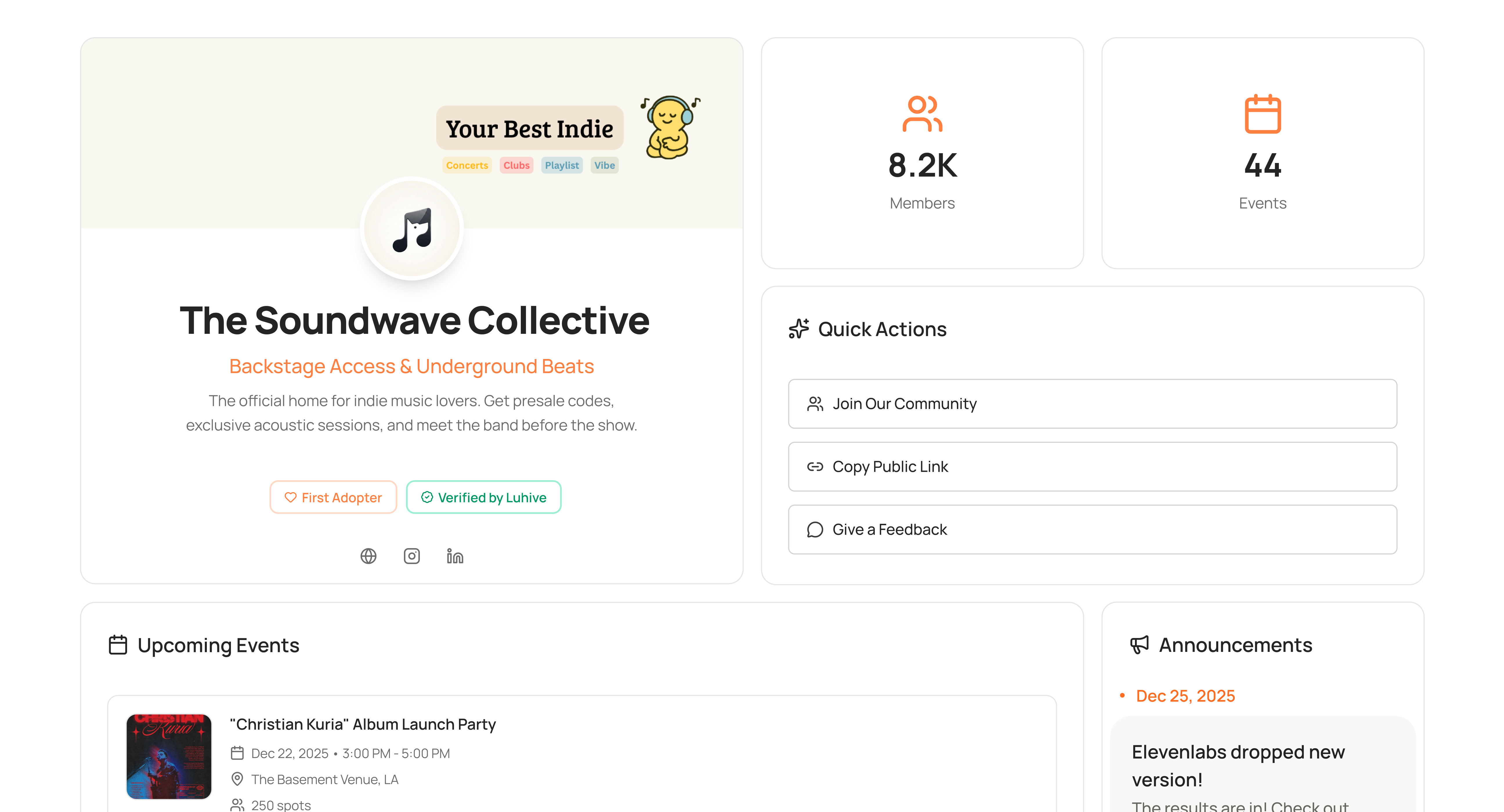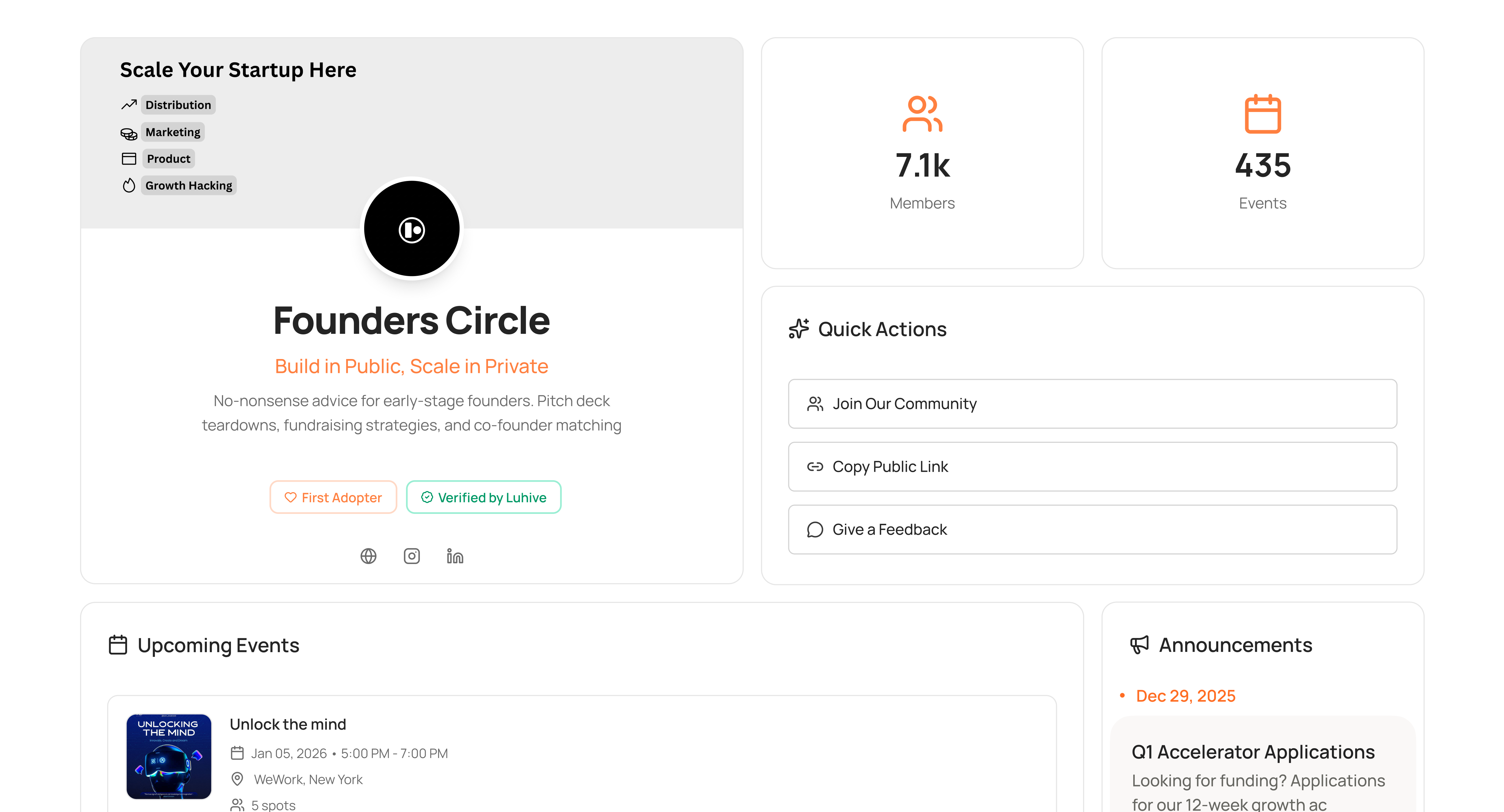 Unify your data, events, and announcements. Finally, a single source of truth for your community.